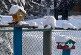 Снег ❄️ припорошил ветки деревьев 🌳. Греются под снегом ☃️.